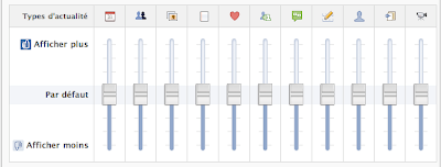 Enfin [« et c’est tout neuf », j‘avais écris cela dans la première version de ce post, mais en fait l’outil est « vieux »], Facebook propose un outil [en forme de console son] pour régler les « actualités de ses amis » en fonction de ce que l’on souhaite privilégier, amour, groupe, amitiés, vidéos, etc. et